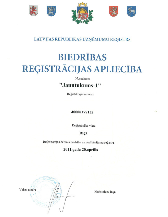 Biedriba Jauntukums-1, reģist.,Nr. 4000 8177 132 Swedbank, LV34HABA055 1030753546